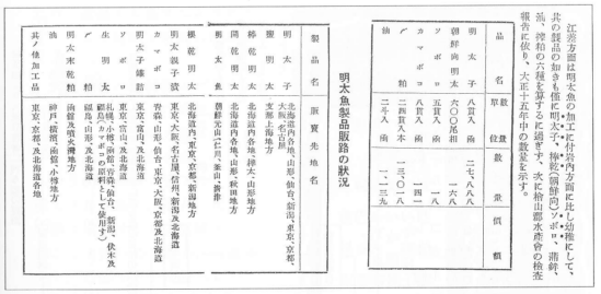 北海道明太、明太子製品販路の状況 檜山郡水産會のもの