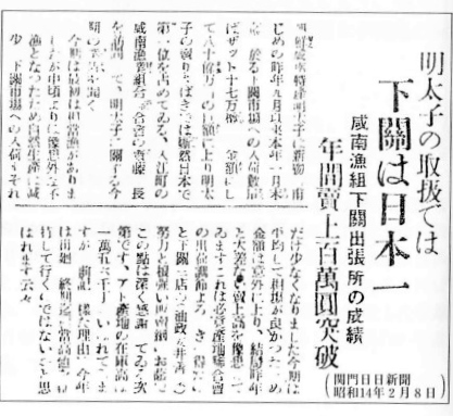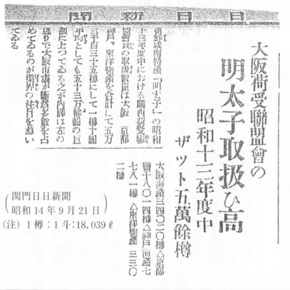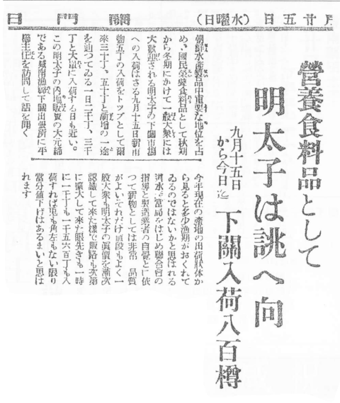 大阪荷受連盟会の明太子取扱い高 昭和13年度中、ざっと5万余樽
