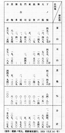 (資料:朝鮮ノ明太、朝鮮殖産銀行、1924(大正14)年)