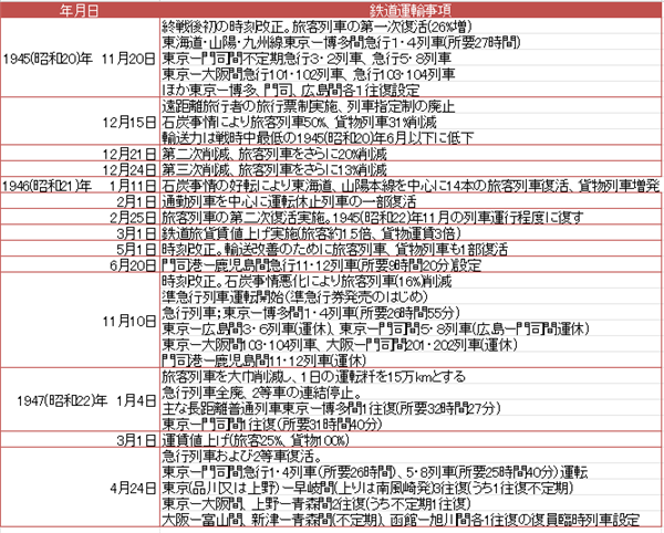 疲弊した鉄道と連絡船は戦争からの復旧のために多くの人を運ばねばなりませんでした。これは戦後三大輸送と言われ、それは以下の3つです。